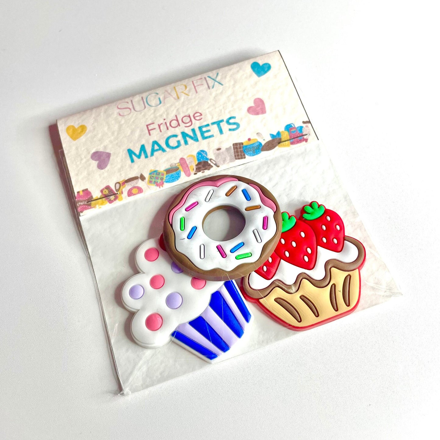 3 Cute Bakery Fridge Magnets - consisting of 2 Cupcake and 1 Ring Donut magnet.