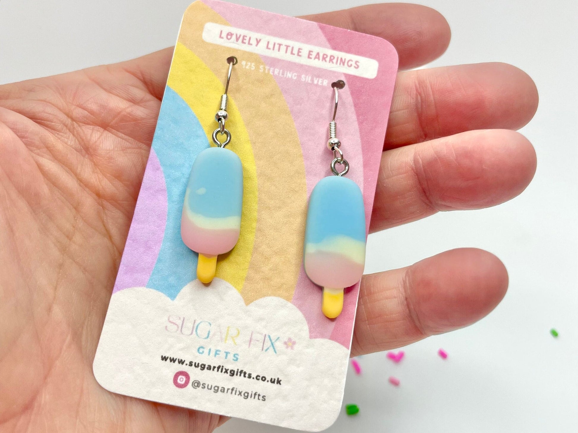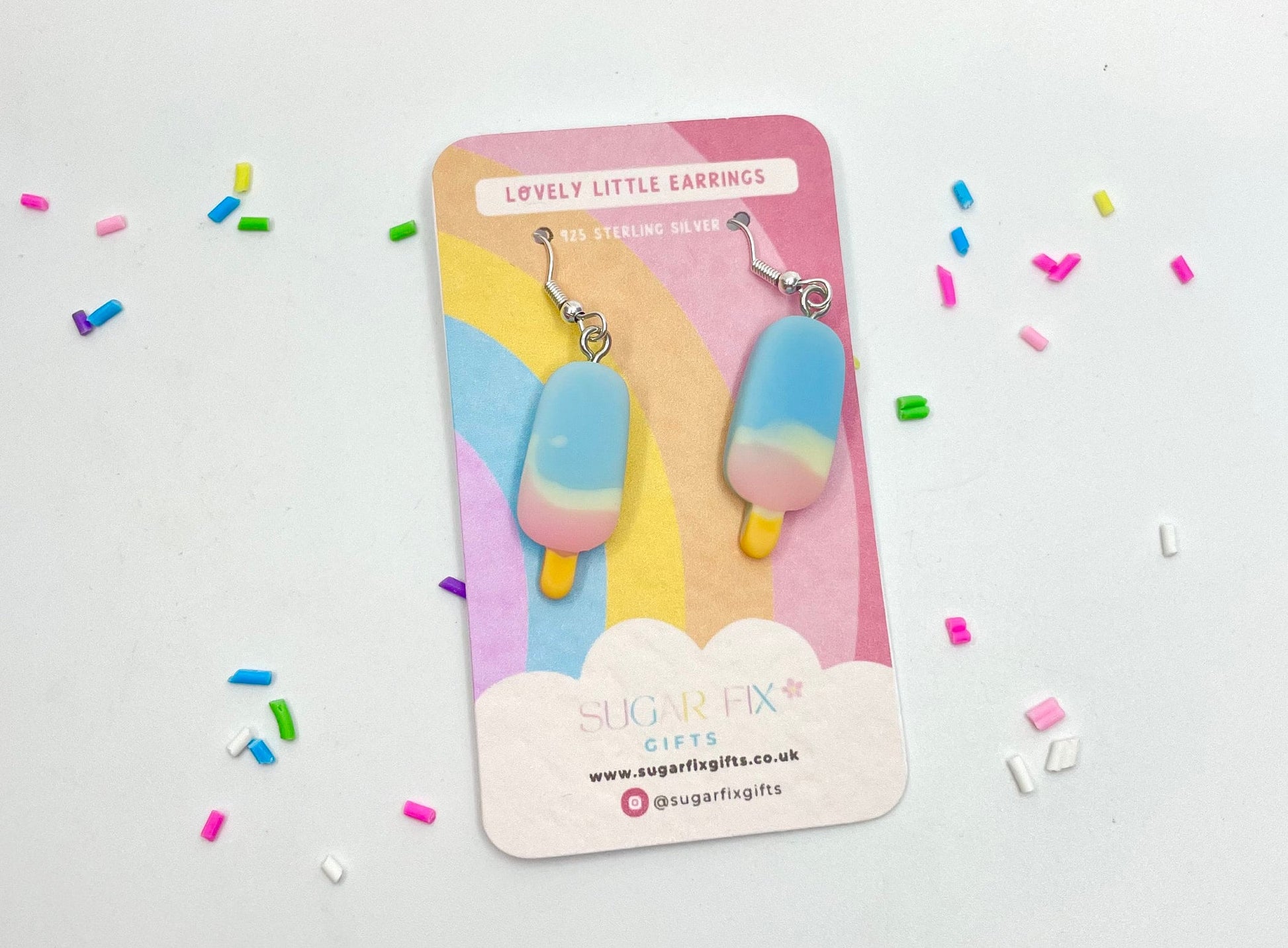 Pastel Blue Buttercream Lolly Popsicle Earrings for pierced ears - made from resin and hung on 925 Sterling Silver ear wires from our Summer Range!