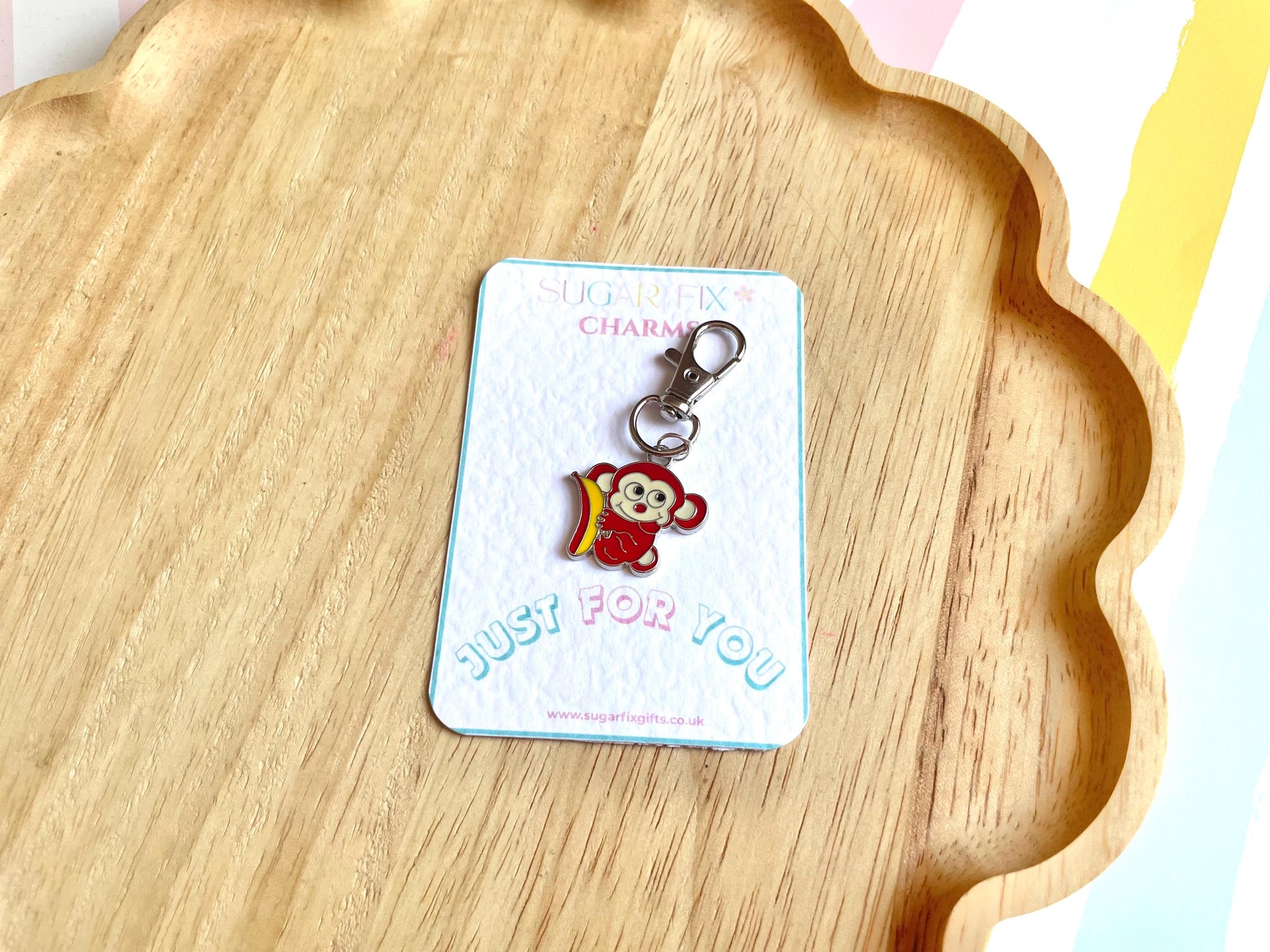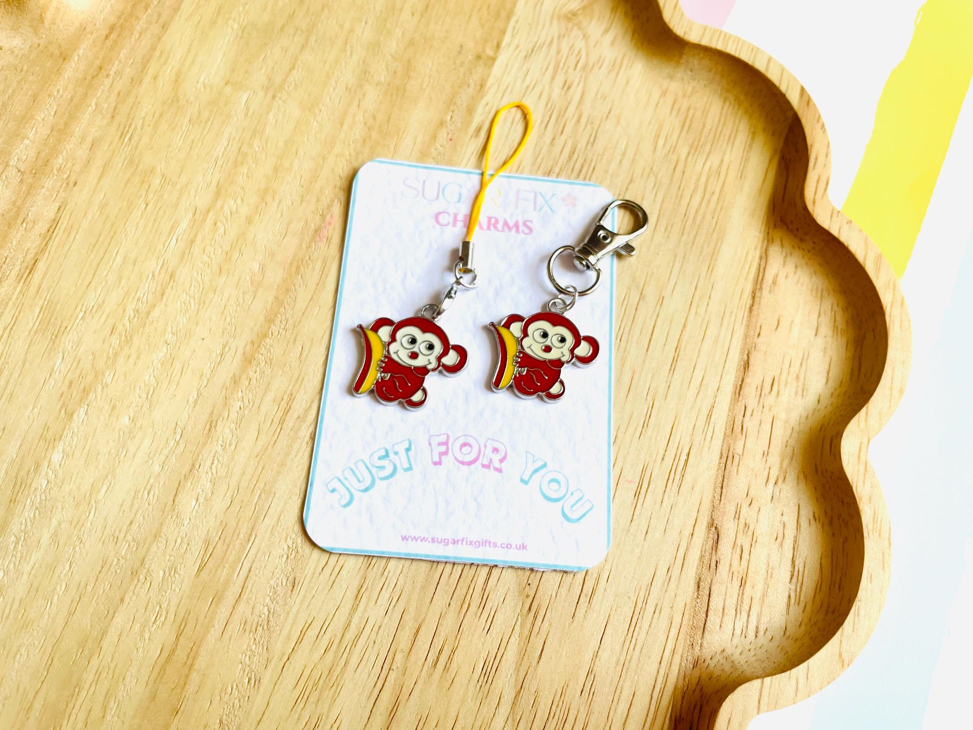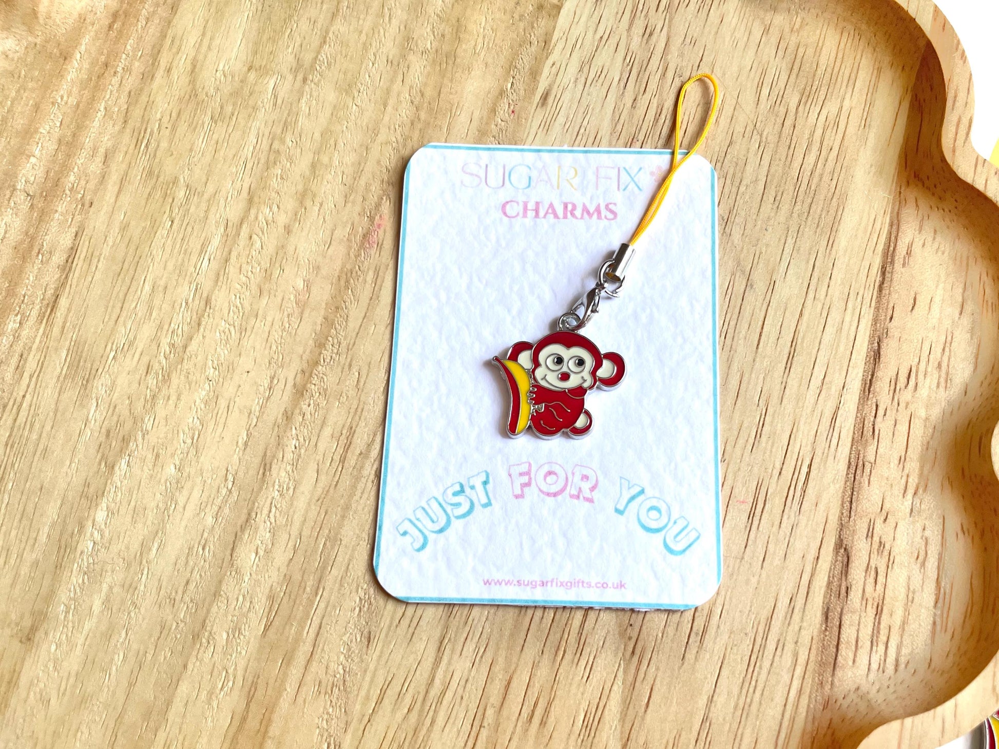 Cute Monkey Enamel Bag Charm - with a yellow thread ready to tie onto your phone case - such a lovely gift idea!