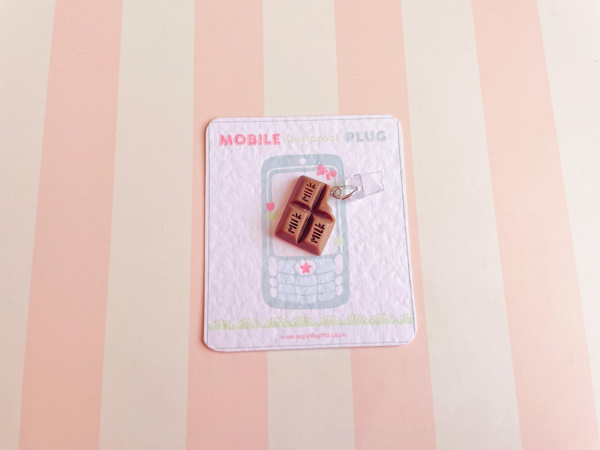 Adorable Chocolate charm dust plug for Kindles, Phones, Tablets - made from resin and available in pink, White chocolate and milk chocolate.