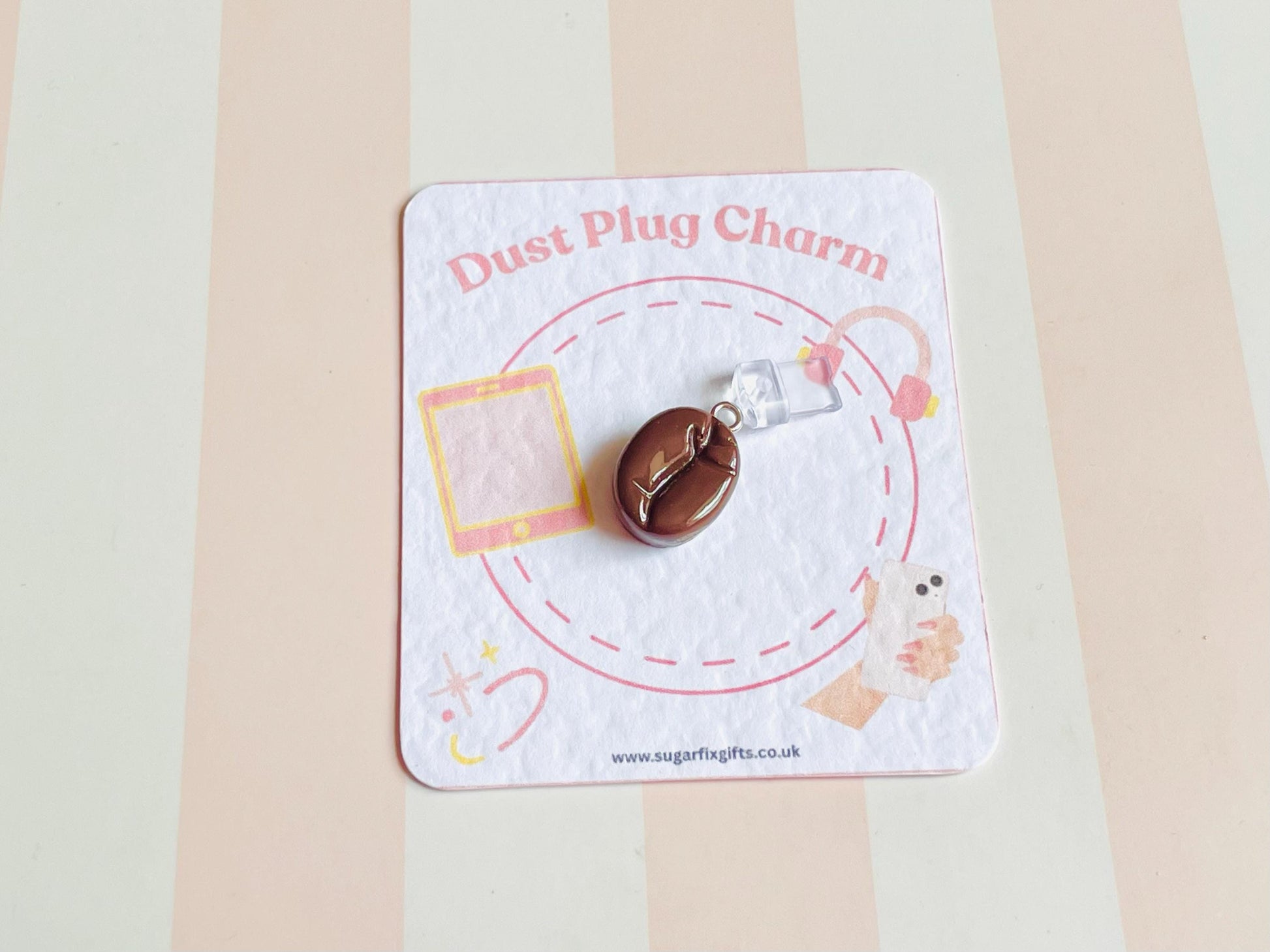 Fun Coffee Bean charm dust plug for Kindles, Phones, Tablets - made from resin.