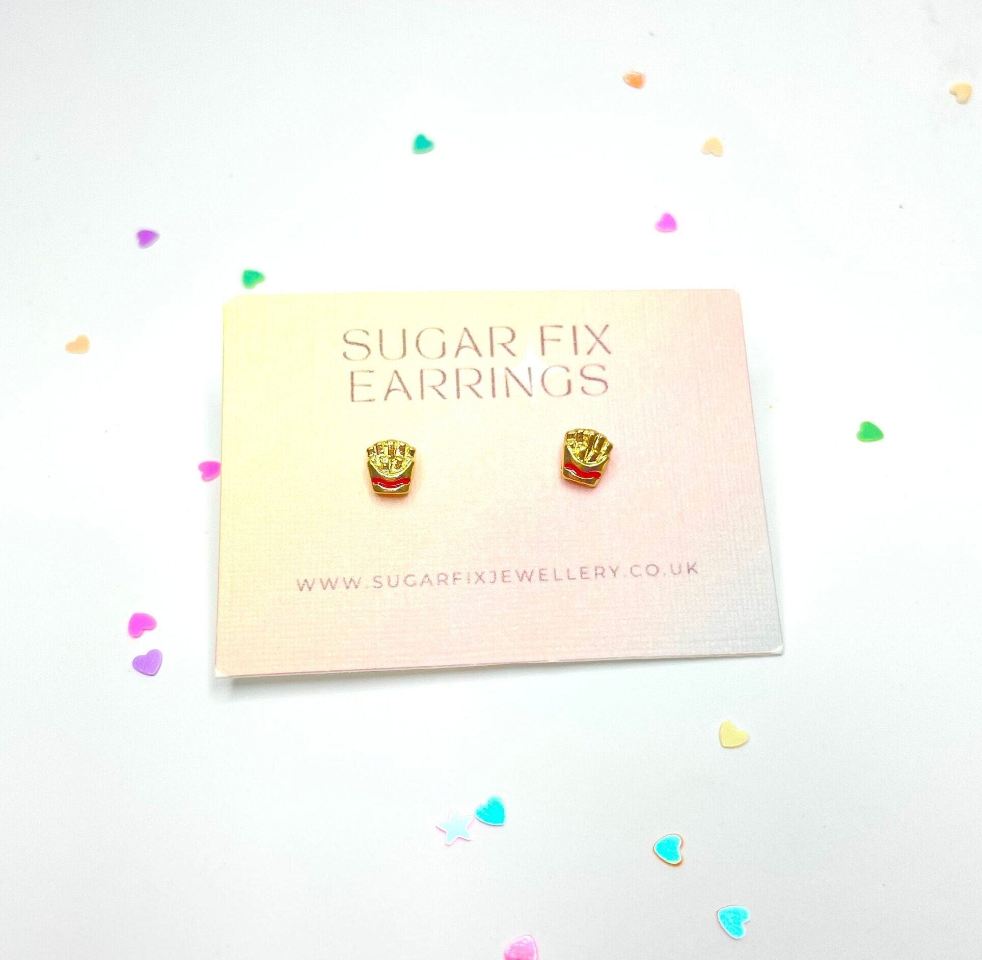 Tiny French Fries Chips Gold Tone Stud Earrings on Metal for pierced ears - So cute and a perfect little gift or treat for yourself.