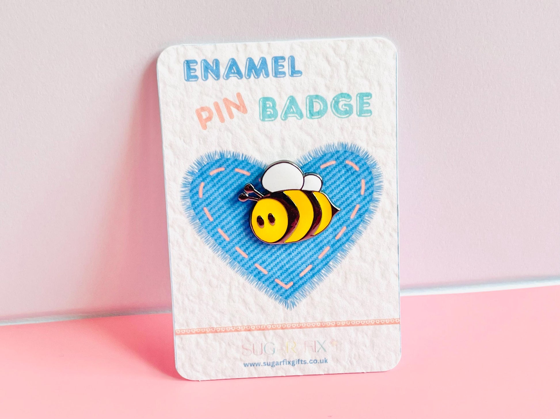 Fun Honey Bee Enamel Pin Badge - great gift for your friend or someone who likes Bees - or maybe someone who is always busy! - just a fun thoughtful gift or maybe a little adornment for your own jacket - presented on a lovely sentiment backing card and an organza bag is included.