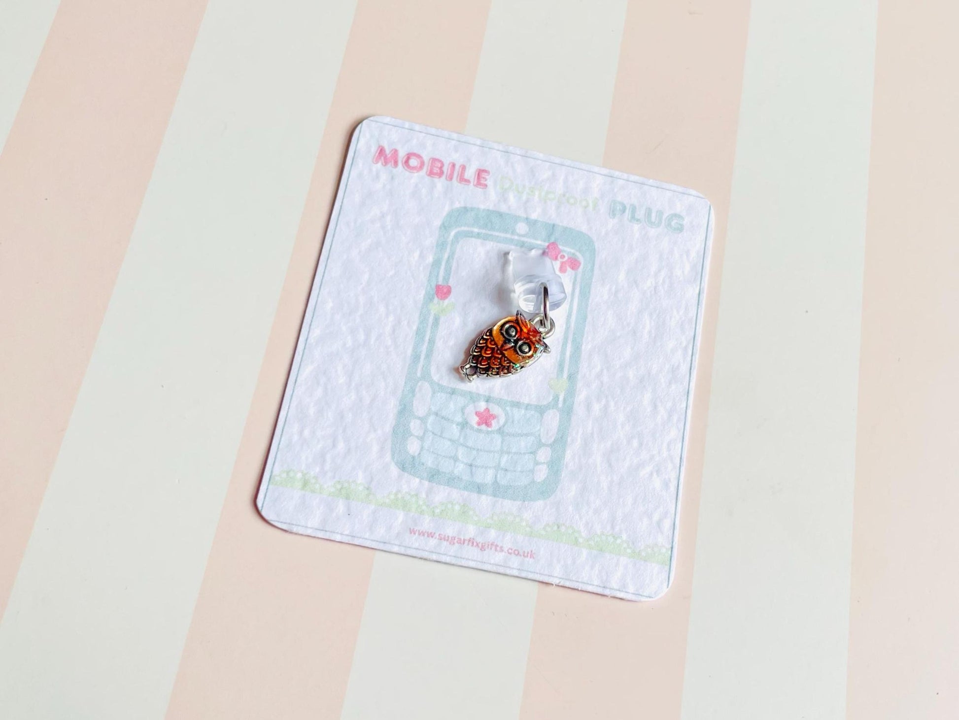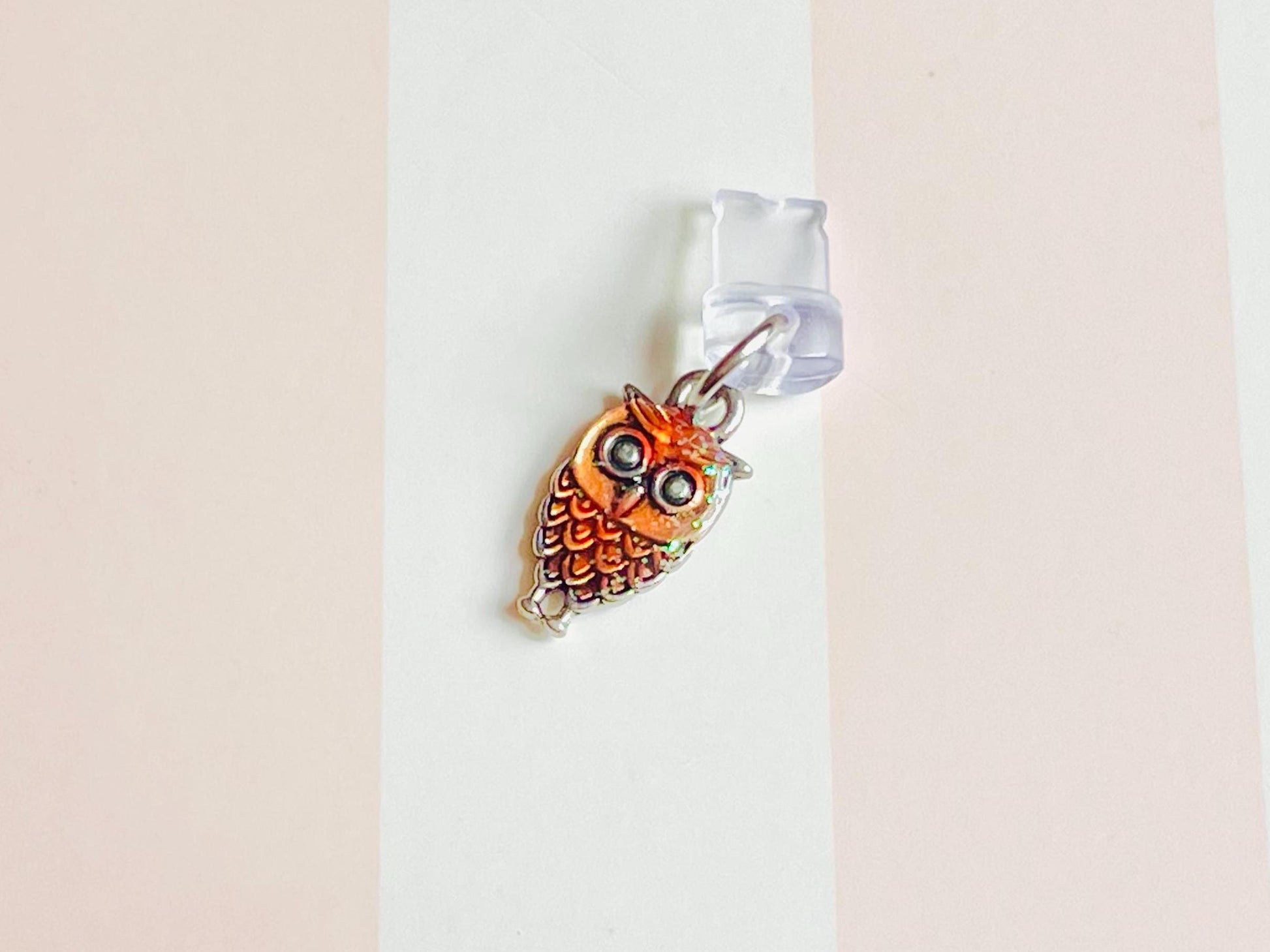 This a glittery Owl charm dust plug for Kindles, Phones, Tablets - made from enamel.