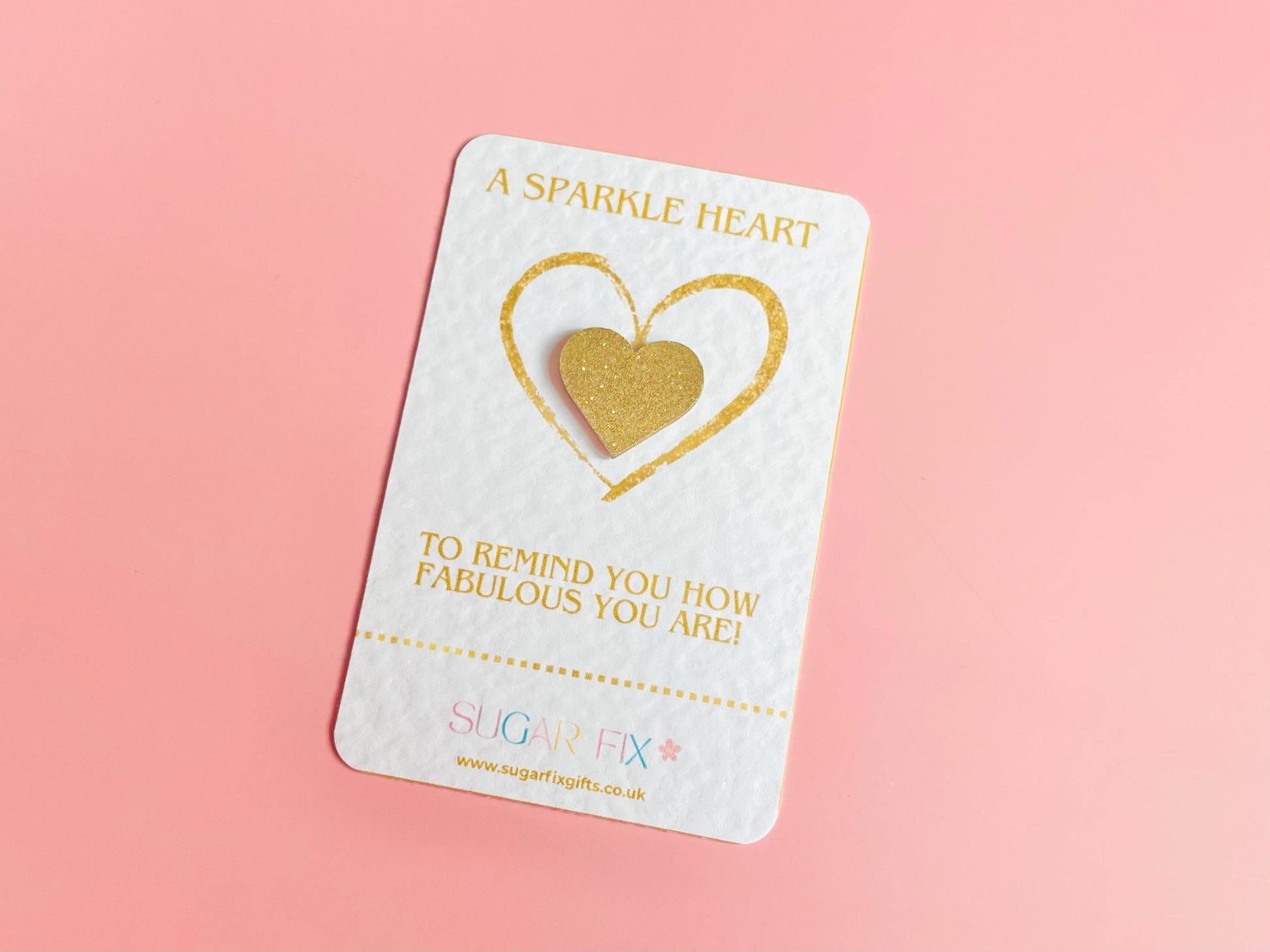 Let someone know how fabulous they are with this Gold Heart Pocket Hug with a handmade wooden heart covered in gold glitter with a lovely sentimental verse “To Remind You How Fabulous You Are” on 300gsm card. Perfect as a keepsake token gift or slip into a greetings card.