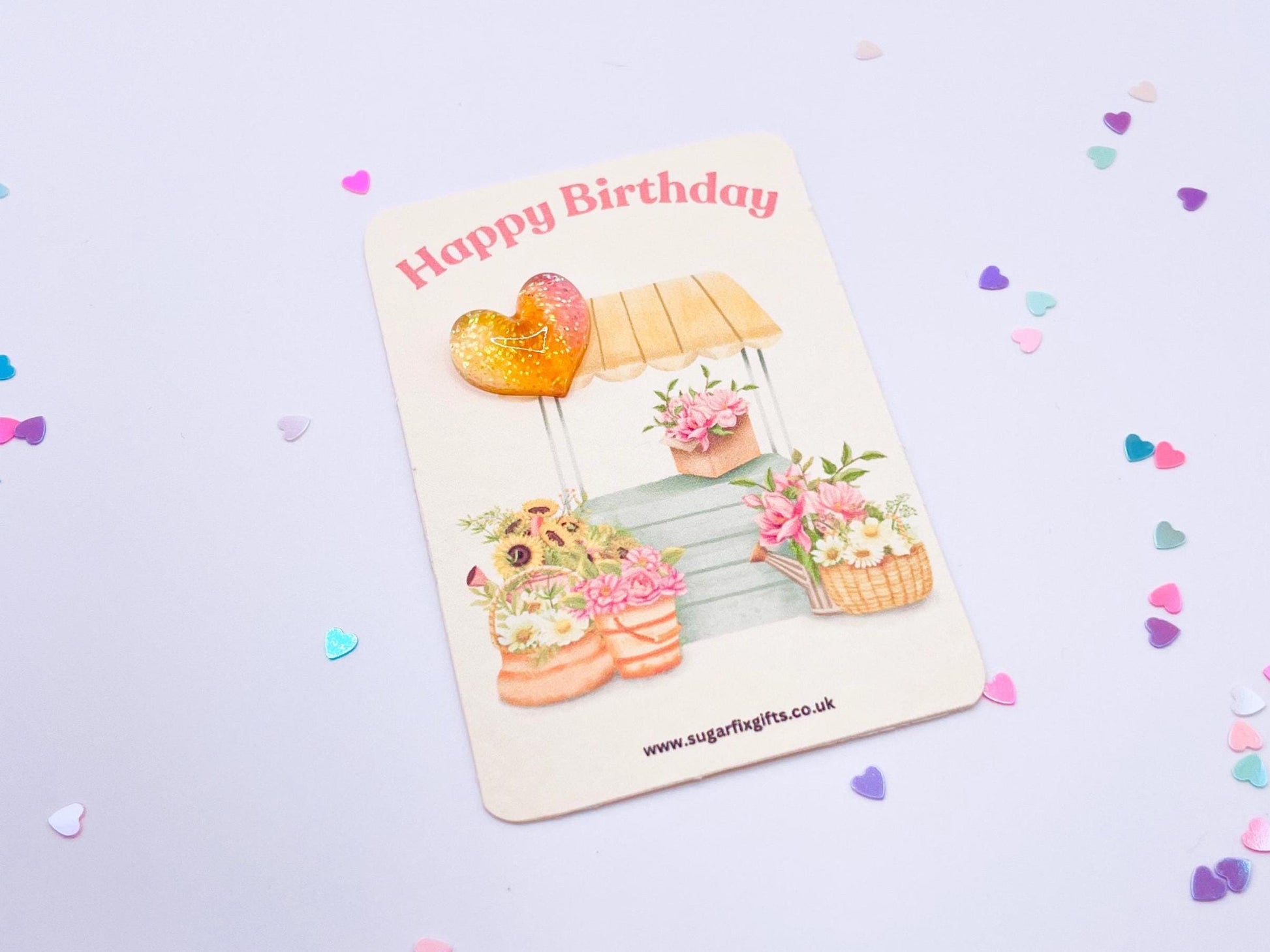 Happy Birthday Pocket Hug - perfect for someone who loves flowers or maybe a keen gardener, with a peachy pink resin heart.