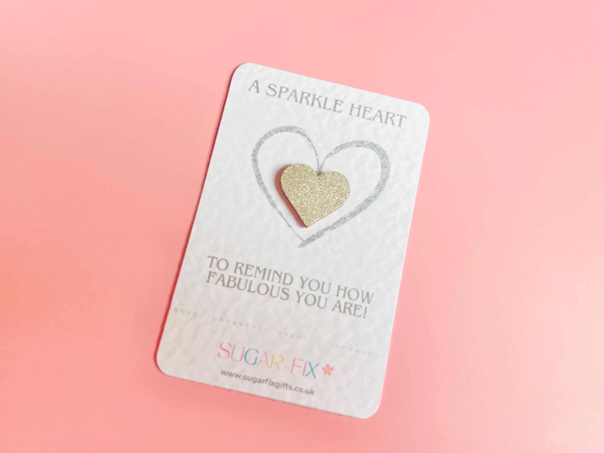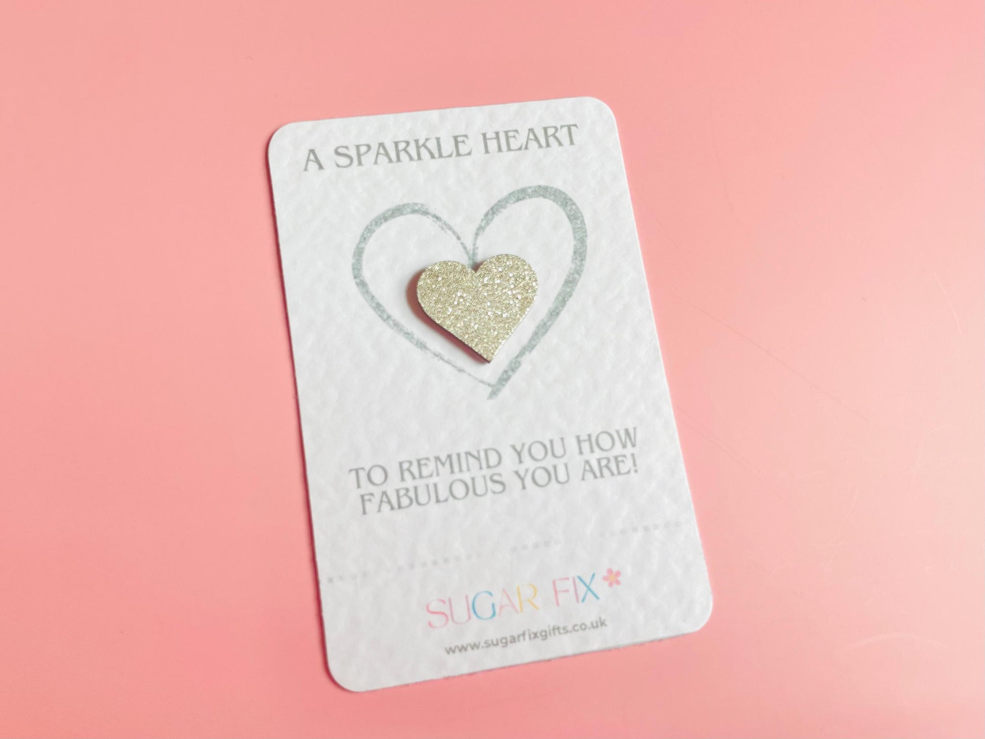 Let someone know how fabulous they are with this Silver Heart Pocket Hug with a handmade wooden heart covered in silver glitter with a lovely sentimental verse “To Remind You How Fabulous You Are” on 300gsm card. Perfect as a keepsake token gift or slip into a greetings card.