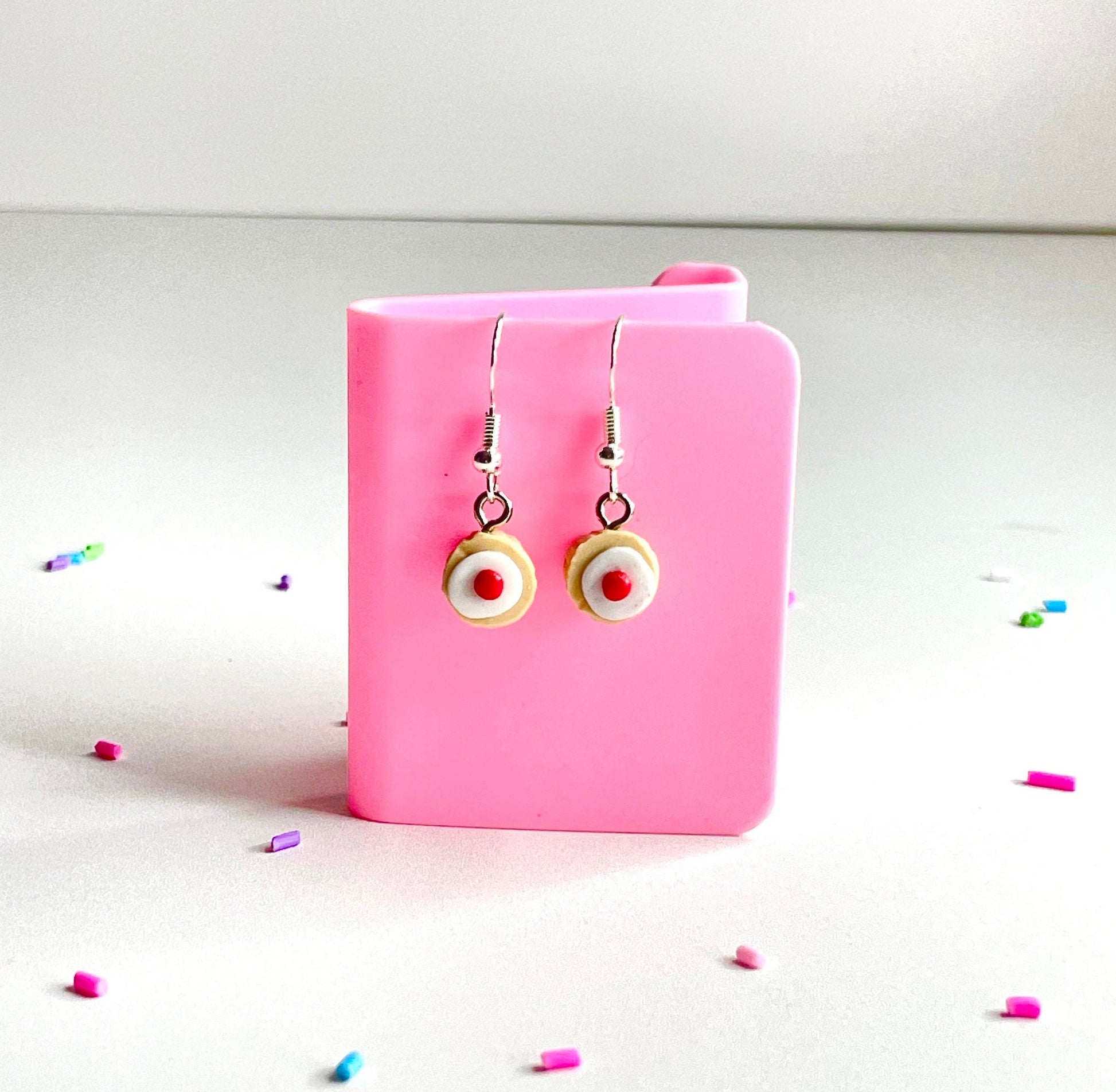 Omg! Tiny Cherry Bakewell Tart dangle dropper Earrings for pierced ears - Lovingly Handmade with Fimo Polymer Clay including the Cherry on the top hung on 925 Sterling Silver ear wires.So cute and a perfect gift for any foodie!