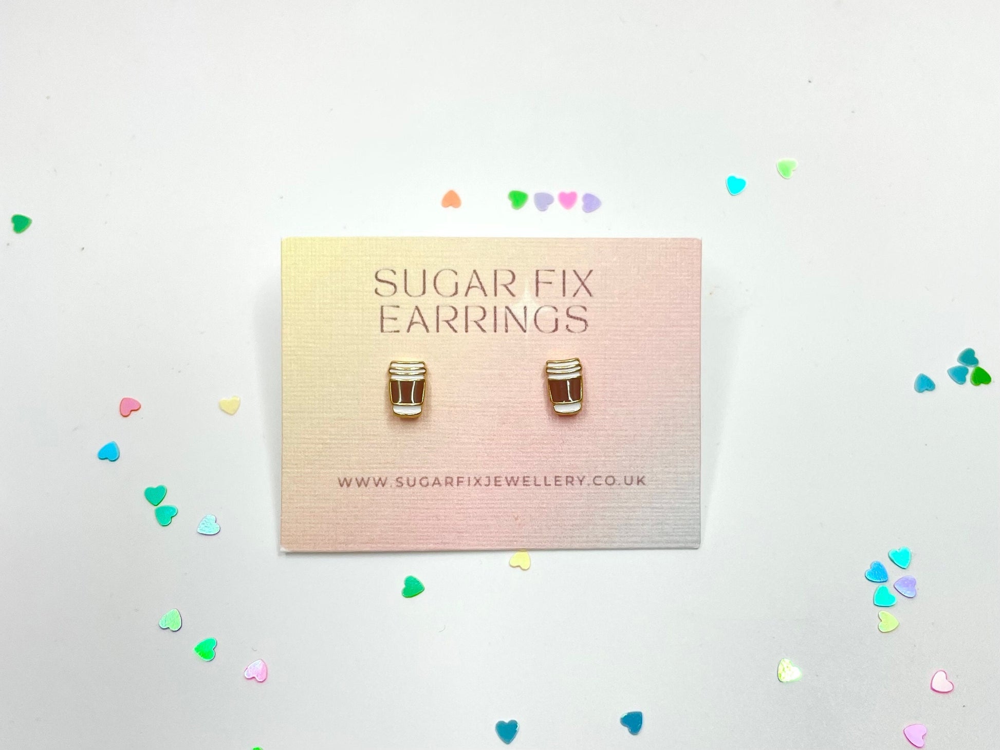 Tiny Coffee Take-Out Cup Stud Earrings on Silver Tone Metal for pierced ears - So cute and a perfect little gift or treat for yourself - perfect for any coffee lover?