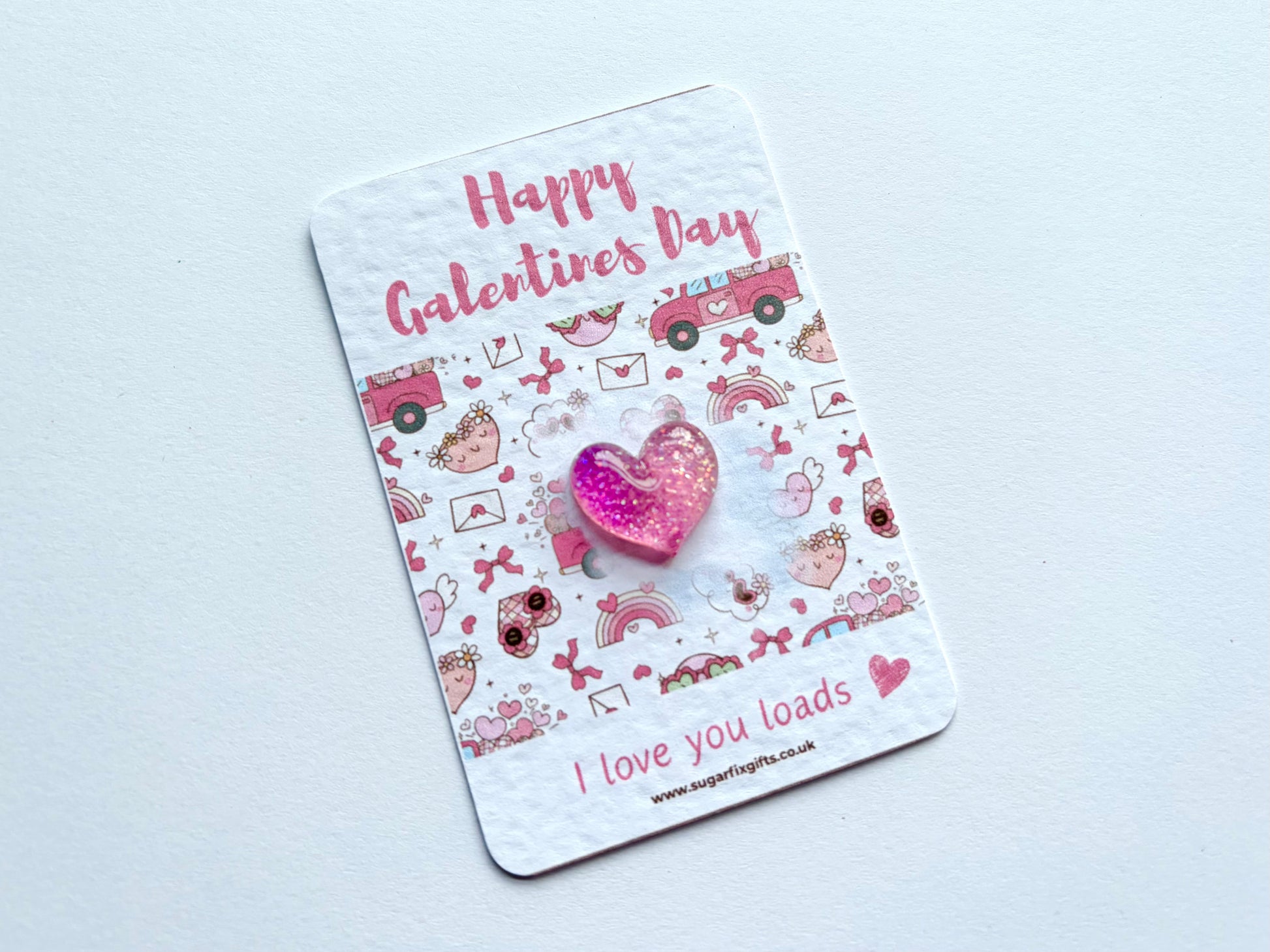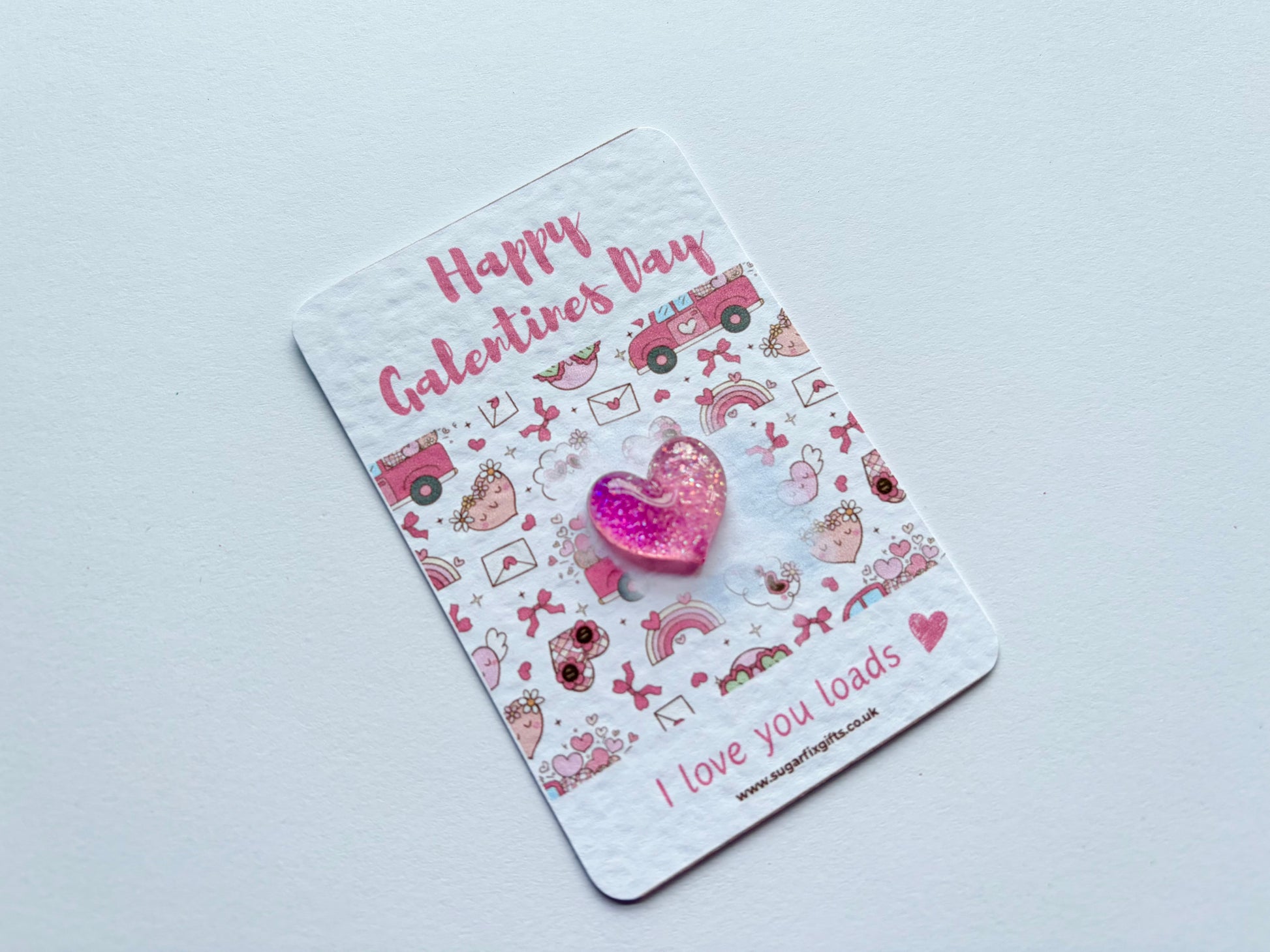 Happy Galentines Day Pocket Hug - for someone who needs to know you that you love them loads - With a cute resin heart on the front.